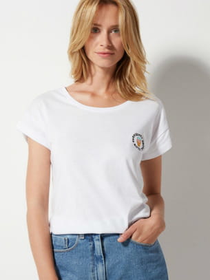 T-shirt blanc en coton "Farniente social club" de Albertine pour Monoprix
