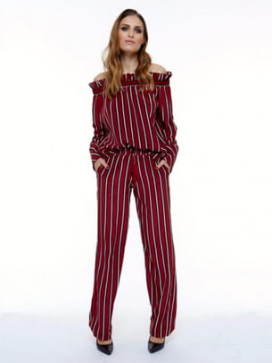 Blouse à col Bardot et rayures rouges noires et blanches de Bel Air