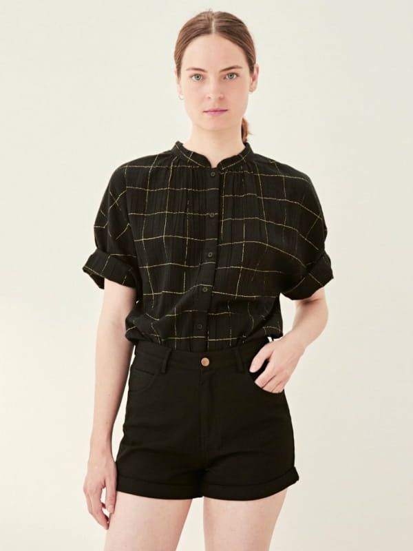 Chemise à manches courtes noire à carreaux dorés de Polder