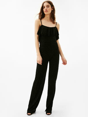 Combinaison noire à volants et petites fleurs en relief de Bershka