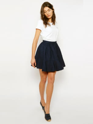Jupe courte évasée bleu foncé de Maison Labiche