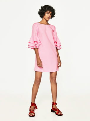 Robe courte rose à manches volantées de Zara