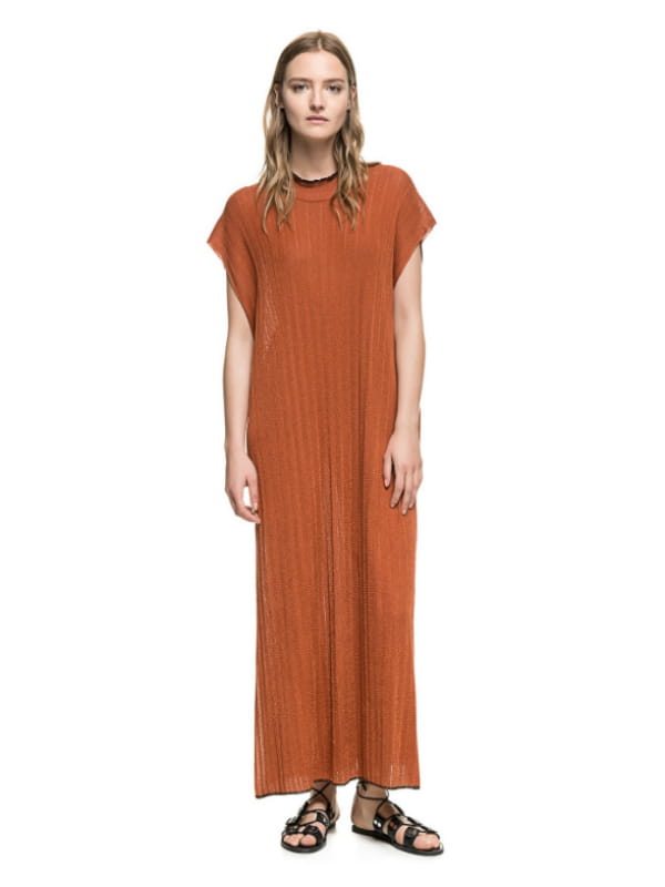 Robe couleur rouille fendue sur la jambe de Bimba y Lola