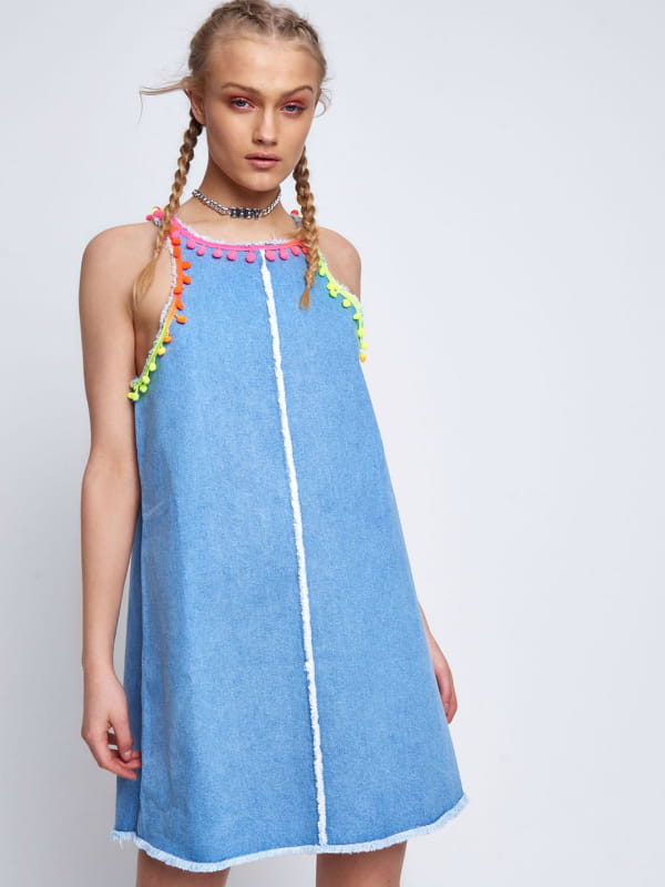 Robe en jean avec pompons multicolores de Jaded London chez Topshop