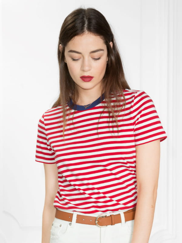 Top blanc à rayures rouges et col bleu marine de & Other Stories