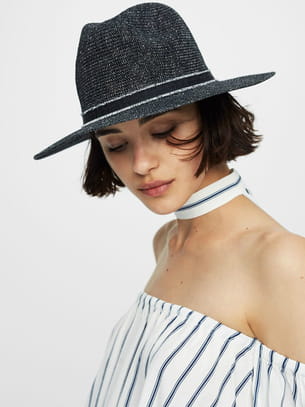 Chapeau gris à ruban noir et blanc de Pull and Bear
