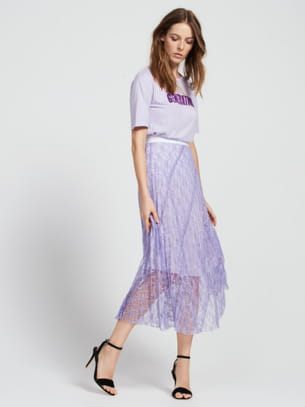 Jupe midi mauve à jeu de transparence de Sandro