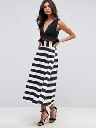 Jupe longue à rayures horizontales noires et blanches d'Asos