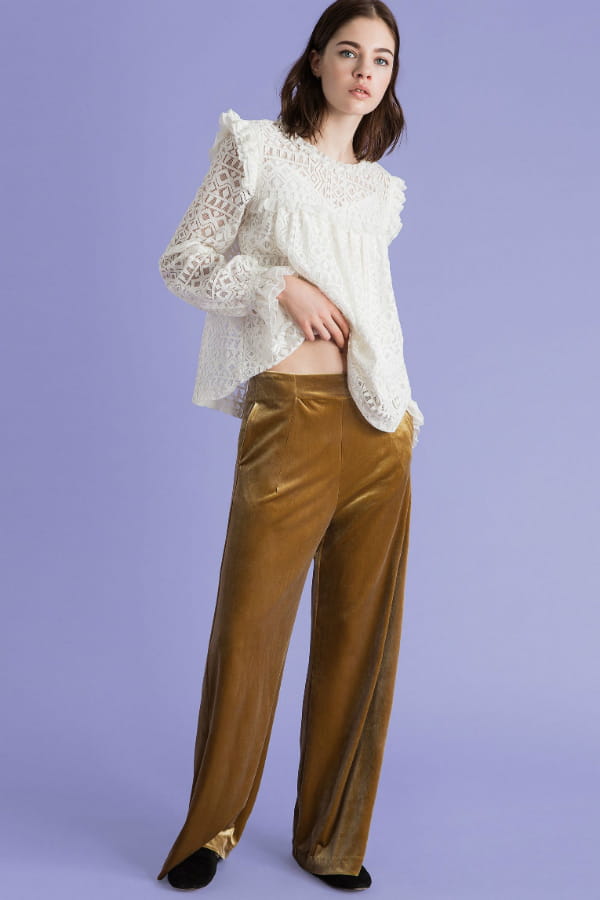 Déjà star l'hiver dernier, le velours lisse revient en force pour la rentrée. Et c'est Suncoo qui imagine pour nous la pièce parfaite : un pantalon large très fluide doré, au style intemporel et qui tombe impeccablement. Parfait avec un body noir ou, dans un tout autre style, avec une blouse en dentelle anglaise, on l'associera en priorité avec des mocassins ou des mules pour une silhouette des plus Gucci. Voilà la pièce forte que l'on veut absolument dans notre dressing cet automne !