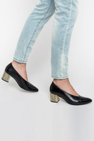 On les imaginait et Eram les as faits : les escarpins parfaits, en plein dans la tendance automne-hiver 2017-2018. Cette saison, la marque de chaussures française nous propose donc une magnifique paire d'escarpins noirs qui n'a absolument rien de banal. Avec leur talon doré large, arrondi et rainuré, avec leur décolleté en V, les "Melibee" seront parfaites avec un jean droit 7/8ème, un combi-pantalon mais aussi des robes et des jupes longueur midi. Outre leur look sans faute, Eram a su trouver la parfaite hauteur pour les working girls pressées. De quoi nous faire une belle jambe !