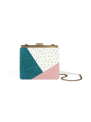 Pochette en cuir tricolore imprimé avec doublure en velours bleu cotelé et chaine détachable de Tammy et Benjamin