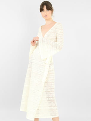 Robe écrue en dentelle ajourée avec manches évasées de Pimkie