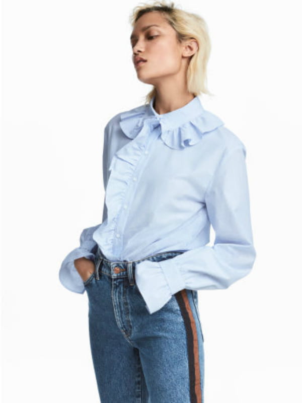 Chemise à très fines rayures bleues et blanches et à volants de H&M