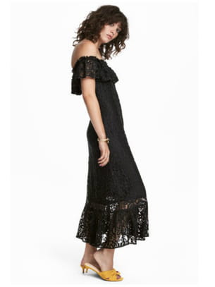 Robe longue en dentelle noire à volants de H&M