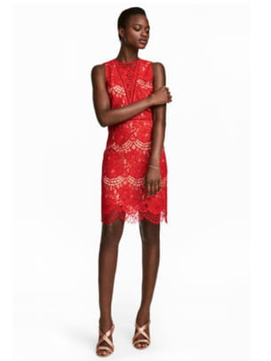 Robe sans manches en dentelle rouge de H&M