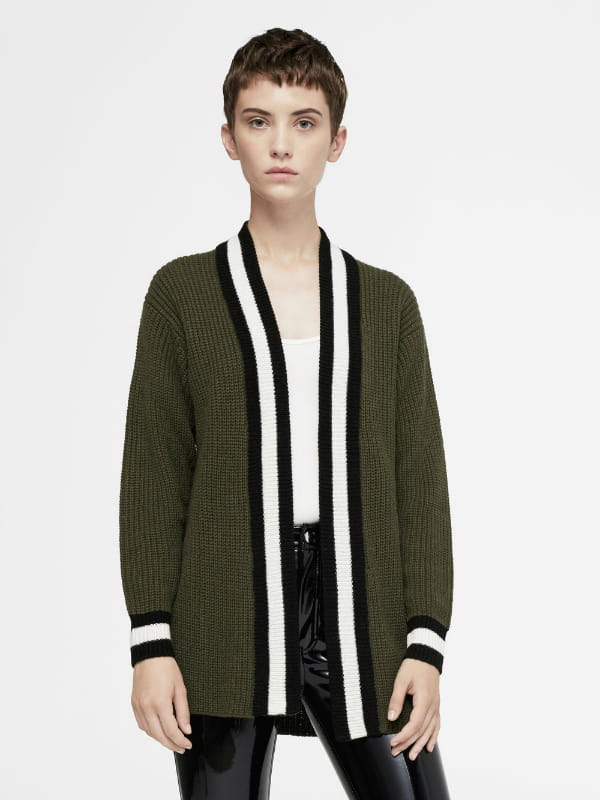 Cardigan  liserés contrastants vert noir et blanc de Mango