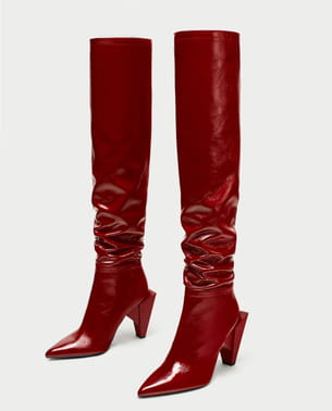Bottes hautes plissées rouges à talon fantaisie de Zara