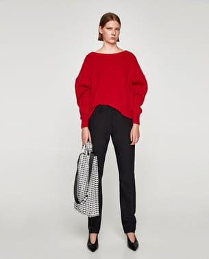 Pull XL rouge avec nœud blanc dans le dos de Zara