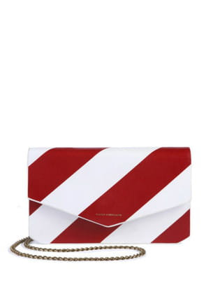 Pochette en cuir blanche et rouge à larges rayures diagonales avec chaîne en laiton de Tammy & Benjamin