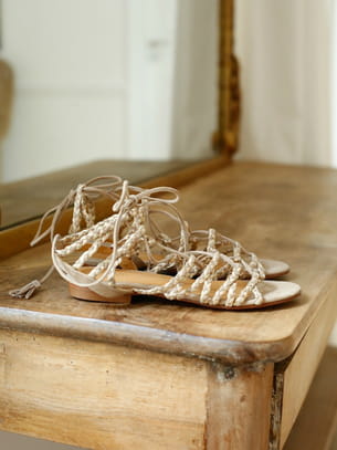 Sandales en cuir chèvre velours dorées avec tresses et raphia de Sézane
