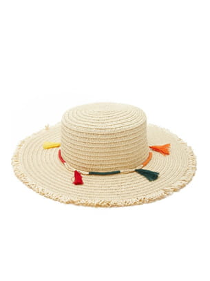 Chapeau en paille effilochée avec pampilles colorées de Forever 21