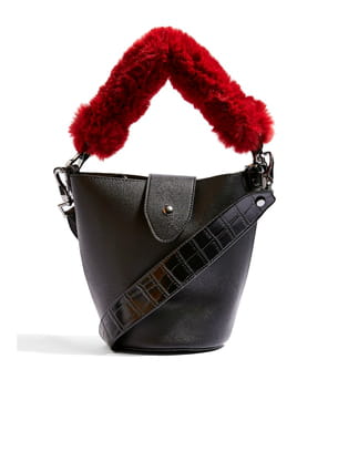 Sac trapèze avec anse en fausse fourrure noir et fuchsia de Topshop