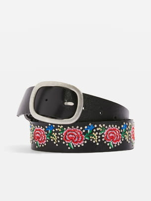 Ceinture en similicuir noir avec fleurs brodées de Topshop
