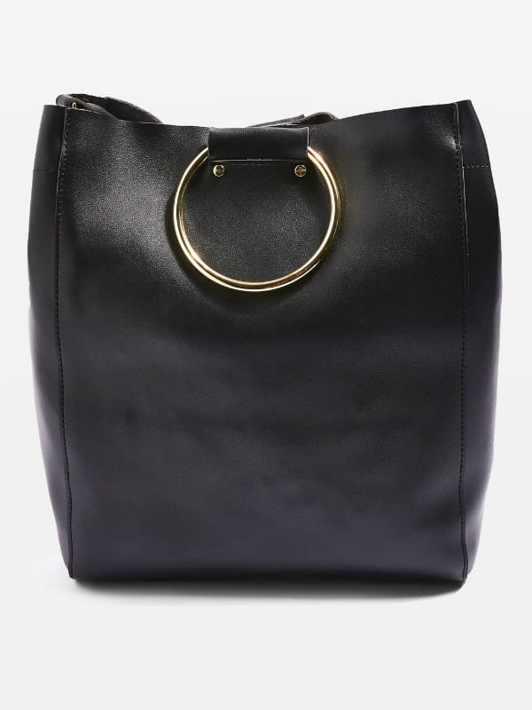 Sac noir en simili cuir avec poignet anneau en métal de Topshop
