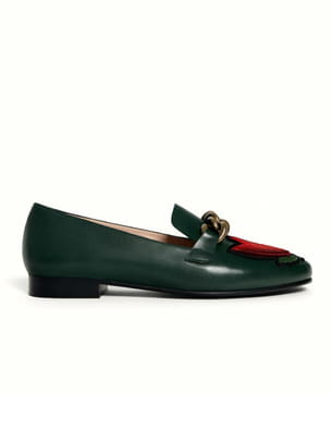 Mocassins en cuir vert avec broderie tulipe de Uterque