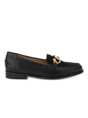 Mocassins à gourmette dore en cuir noir de Cosmoparis