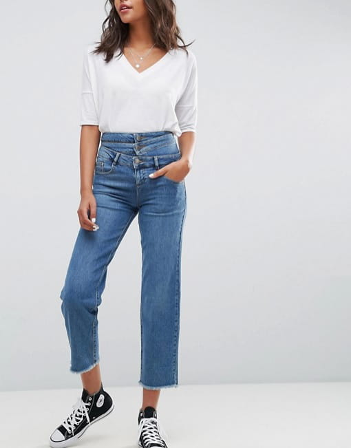Jean droit 7/8me à taille triple bleu vogue de Asos