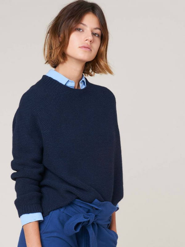 Pull navy en maille point mousse tricoté en Italie de Sessùn