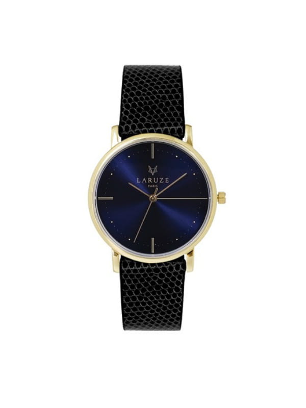 Montre avec bracelet noir en lizard et cadran bleu et or de Laruze