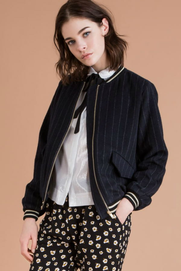 Veste à rayures en laine mélangée marine et noir de Suncoo