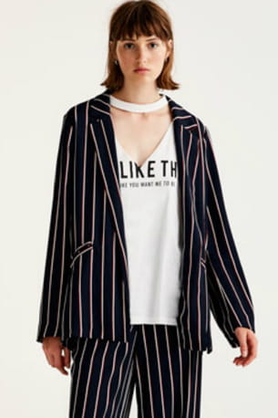Blazer marine rayé rouge et blanc de Pull and Bear