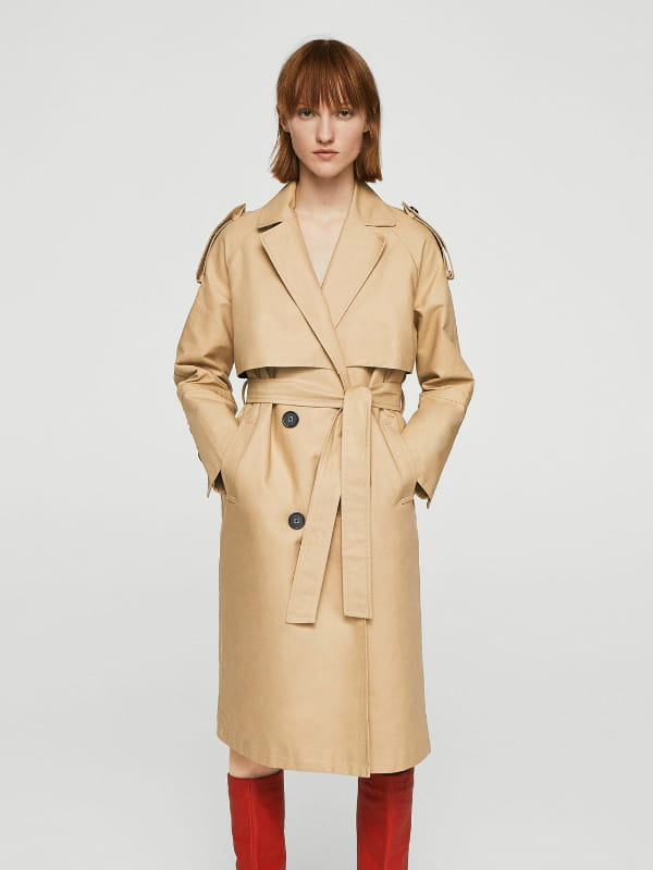 Trench beige en coton coupe oversize avec double boutonnage et fente a l'arrière de Mango