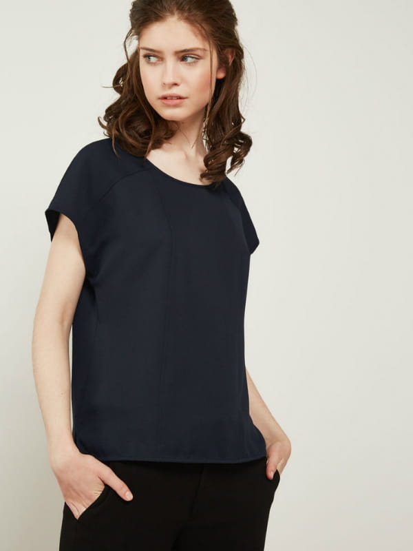 Top en crêpe bleu marine à manches courtes de Comptoir des Cotonniers