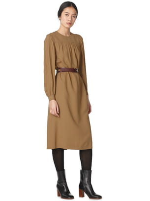 Robe midi camel en crêpe avec ceinture amovible de A.P.C.