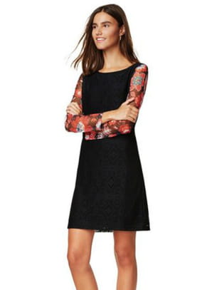Robe noire avec manches 3/4 à motif floral, inspiration dentelle de Desigual