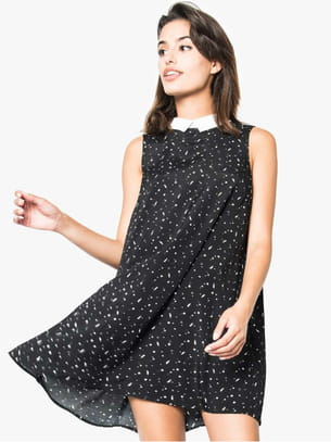 Robe noire en viscose imprimée et avec col blanc de Gémo