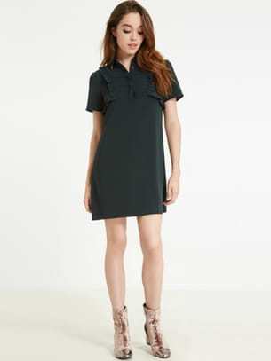 Robe vert sapin, forme trapèze en crêpe de Morgan
