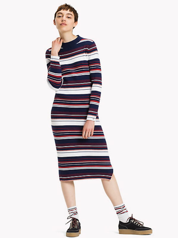 Robe longue en tricot à imprimé rayures de Tommy Hilfiger