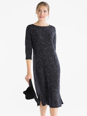 Robe midi bleu chiné aux manches 3/4 de C&A