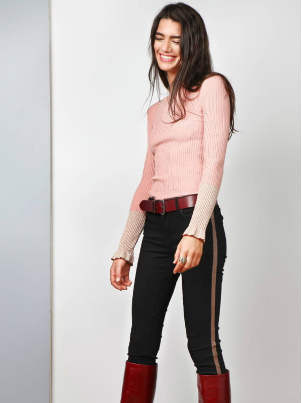 Jean slim noir avec bande cuivrée sur les côtés de Les Petites...