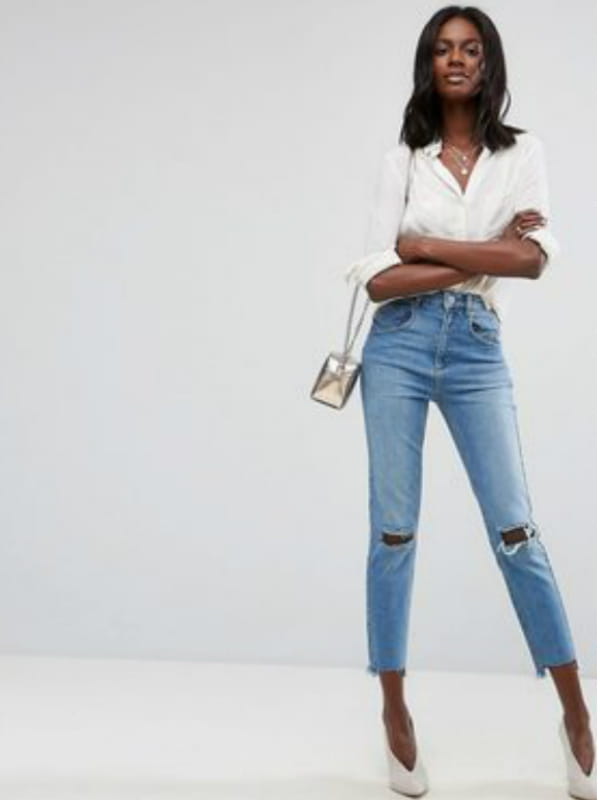 Jean slim coupe mom avec déchirures aux genoux de Asos