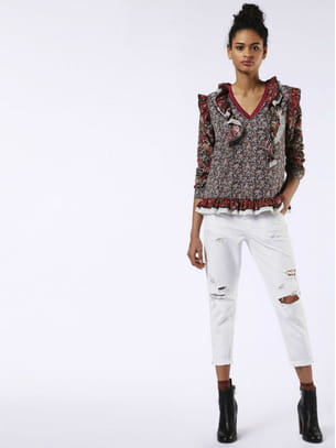 Jean blanc coupe 7/8e avec détails destroy de Diesel