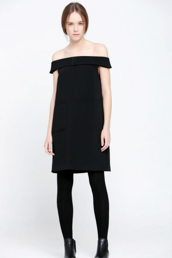 Robe noire aux épaules dénudées en polyester de See U Soon
