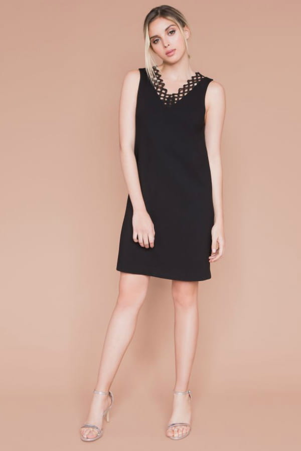 Robe noire droite sans manches avec encolure en guipure de Suncoo