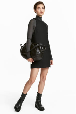 Robe noir courte en twill de laine et nylon et à manches longues de H&M Studio