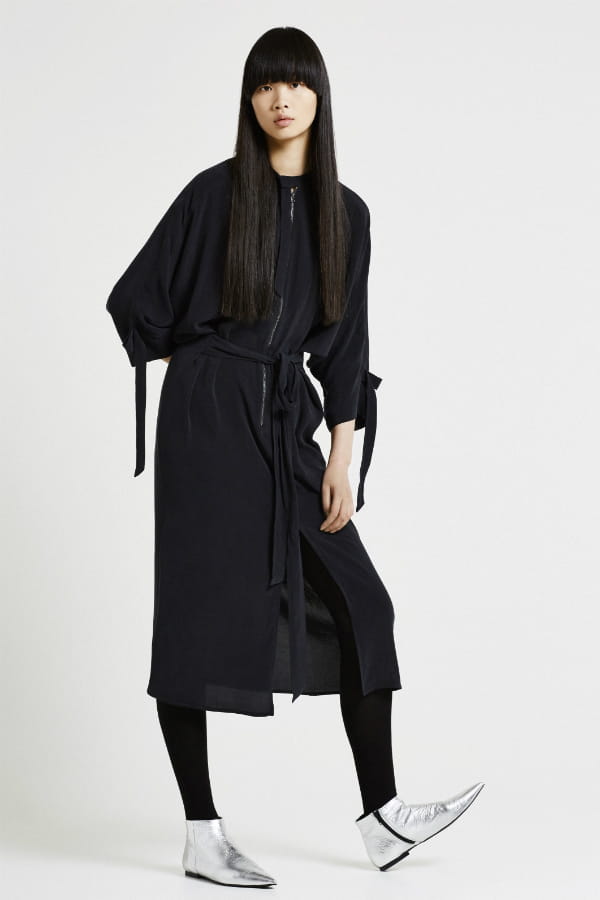 Robe midi ceinturée à la taille avec maxi zip argent et lanières aux manches de Bimba y Lola